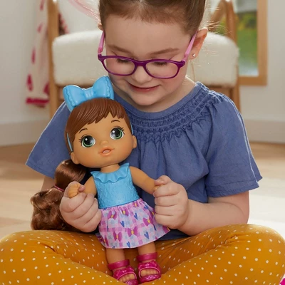 It’s a bubbly salon with Baby Alive Sudsy Styling doll! Little aspiring hair stylists can place their baby doll with hair in her styling chair and pretend she’s at a sudsy salon. This Baby Alive doll set features a salon doll chair with base, plus a cup to mix her bubble solution. She also includes pretend salon Baby Alive doll accessories like a comb, styling tool, pretend blow dryer, mirror and barrette. Kids can pour the bubble solution into the chair, press the button on the chair’s arm and watch bubbles form on her head! Use her doll hair accessories to shape the suds and style her brushable hair — then show off her look in her mirror! When the bubble solution is done, use your own children’s shampoo or clear bubble solution to keep the sudsy fun going. This Sudsy Styling baby doll with hair and accessories are great pretend hair salon toys for 3 year old girls and boys and up. Make fantastic gifts for kids for birthdays and holidays that love playing with Baby Alive dolls.
