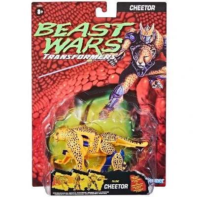 Transformers Beast Wars Cheetor is a Deluxe Class scaled figure that stands 5.0-inches tall in robot mode and transforms from robot to Cheetah and back. The Transformers Beast Wars features the heroic Maximals vs. the evil Predacons in a battle for a primitive world where every figure in the toyline transforms from a robot to a beast. Accompanied by a CGI cartoon, Beast Wars has Optimus Prime and Megatron reborn with their new Beast forms, and adds new scales to the classes of Transformers Basic Class, Deluxe Class, Mega Class, Ultra Class and even Super Class. Start your Transformers Beast Wars collection today with Cheetor. Add this highly sought-after piece to your collection today at TFSource, your source for Hasbro Transformers Collectible Action Figures.