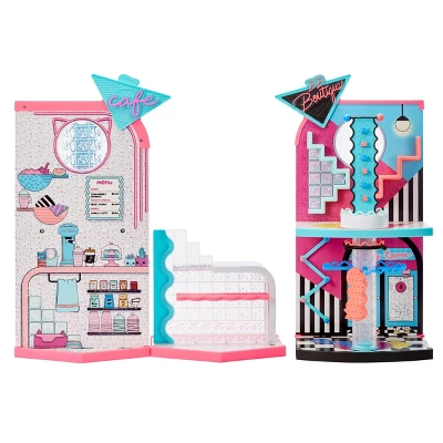 For the ultimate spot that your L.O.L. Surprise Dolls can shop-till-they-drop, take them to the L.O.L. Surprise! O.M.G. Mall of Surprises™! Unbox 50+ surprises with this all-new playset, which offers 360 degrees of interactive glam play. The two-story B.B. Boutique features clothing rack displays that really spin to show off all the included fierce fashion and accessories, while the Café hangout comes with a two-sided counter ready for ordering and serving up a variety of the delish donuts and drinks. At the L.O.L. Surprise! O.M.G. Mall of Surprises™, you can shop and play with all L.O.L. Surprise Tweens, O.M.G., and collectible dolls. Pair this playset with the L.O.L. Surprise Shine On Salon & Spa™ and the O.M.G. House of Surprises™ Dollhouse to create an entire world-of-play for all your fashion and collectible dolls!