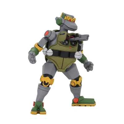 Based on the classic 1980’s Teenage Mutant Ninja Turtles cartoon series, Metalhead debuts as the first deluxe action figure in the line! With the minds of all four ninja turtles ingrained into its programming, this robotic reptile comes with a full arsenal of accessories including 6 different hands, swappable drill & vacuum arm attachments, and opening chest panel with plug in gun! Standing at nearly 7″ tall with a hinged jaw, Metalhead makes for a formidable adversary. Comes in 5th panel window box with new packaging art, an homage to the classic VHS tapes