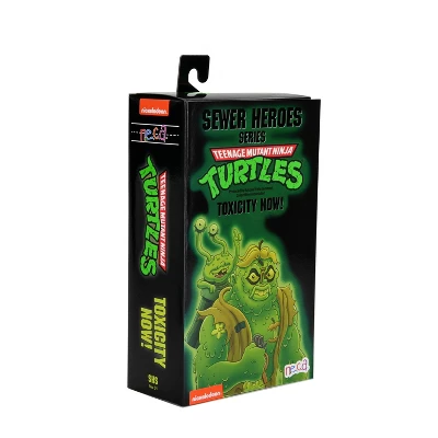 This set of glow-in-the-dark action figures is based on the classic 1980s Teenage Mutant Ninja Turtles cartoon series! It may be hard to tell by the look or smell of him, but Garson Grunge aka Muckman is one of the good guys. Former foe-turned-ally Muckman joins the Turtles in their fight against Shredder and the Foot, and he’s not alone! Tagging along in the adventure is his mutated partner, Joe Eyeball, who sits comfortably in the garbage can attached to Muckman’s back. Sculpted in disgusting detail, Muckman comes with rockilizer, mini can of ooze, interchangeable hands, and interchangeable mouths for varied expressions! Comes in Ultimate style packaging resembling classic VHS artwork.