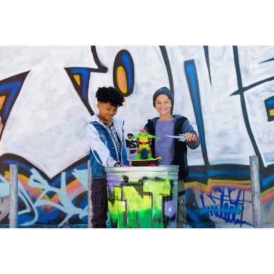 The Teenage Mutant Ninja Turtles Cowabunga Skate RC is a full-function 2.4 GHz remote-controlled skateboard vehicle built for smooth riding and imitating real skateboard moves. Designed with a movie-inspired style Raphael shredding the New York City streets. Use the Sai-shaped remote control to move the skateboard side-to-side, forward, backward and any direction, just like a real skater! If he falls down, don’t worry, spin him around and he’ll get right back up! Cowabunga dude!