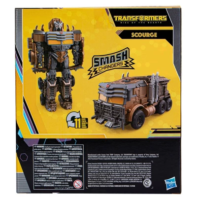 Smash into action with the Transformers: Rise of the Beasts Smash Changer Scourge! Smash Changers figures are based on characters from the new Transformers movie, Transformers: Rise of the Beasts! Figures convert from alt mode to toy robot mode in 3 steps by smashing. (Each sold separately, subject to availability.) Transformers toys for 6 year old boy and girl and up make great gifts for kids.