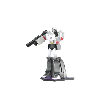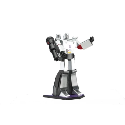 The Megatron statue stands over 9” tall and is inspired by his appearance in the classic Transformers animated series. Armed with his mounted fusion cannon, Megatron stands ready to rule over your Transformers collection with an iron fist!